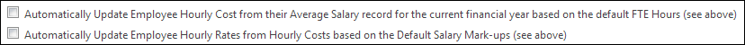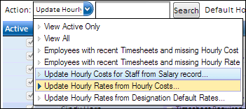 The Hourly Rates can then be calculated from Hourly Costs / Salaries by selecting the applicable option from the 'Action' menu