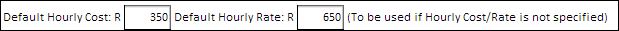 Note: If no Rates or Costs are entered, default values will be used. Defaults can be specified in the same page.